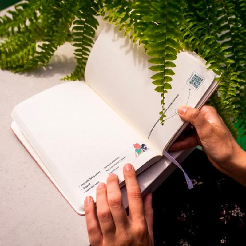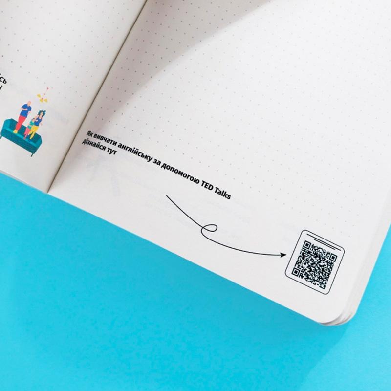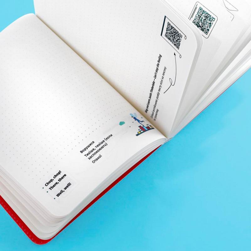 Блокнот в точку с мини-сетом английского на каждый день. На каждом развороте ты найдешь три новых слова, иллюстрации и qr-код на видео, аудио или статью, которые улучшат твой английский. В конце - 5 грамматических таблиц, которые актуальны для любого уровня английского. Купить этот уникальный блокнот будет замечательной идеей как для себя, так и на подарок для того, кто хочет знать больше.