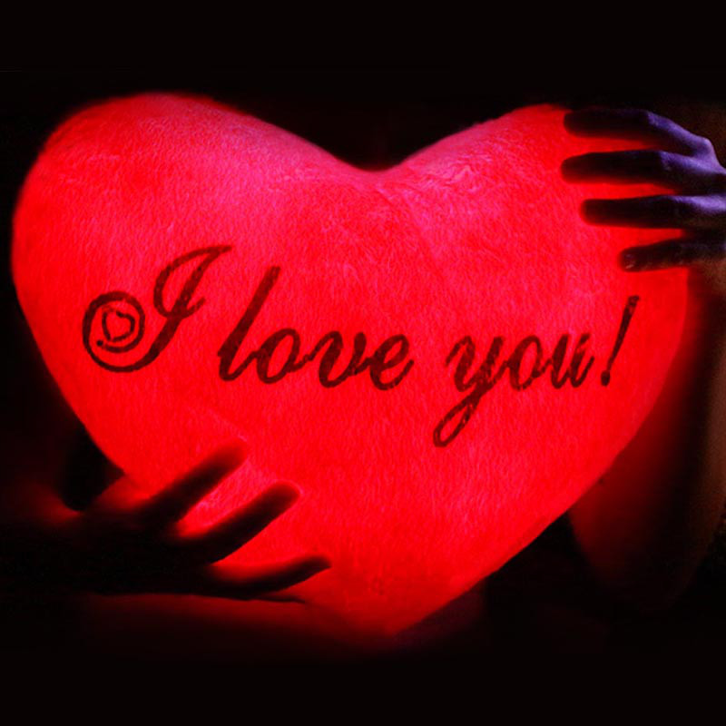 Светящаяся подушка в форме сердца I love you. Напомните о своих чувствах и трепетном отношении с помощью необычной подушки. Подушка светится 7 разными цветами, переливающимися из одного в другой, словно ваше сердце, пылающее любовью.