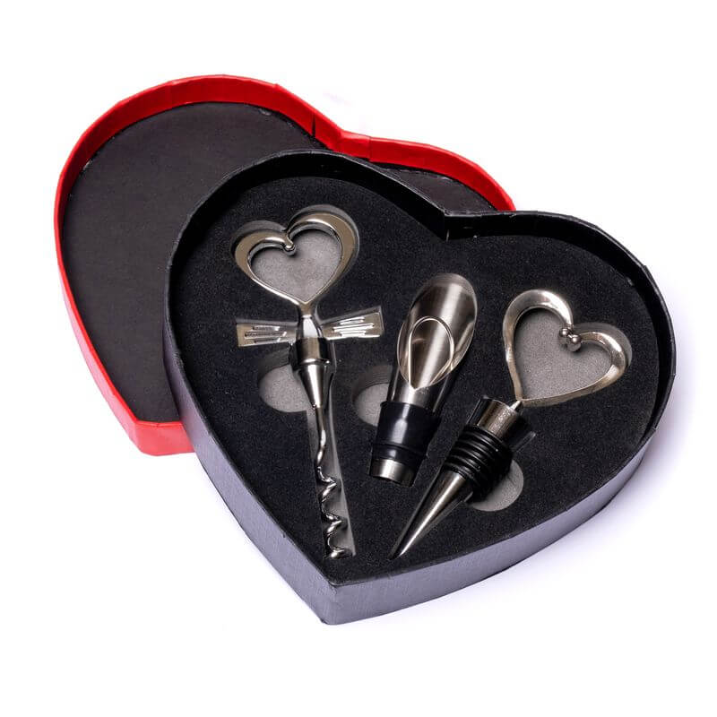 Если жене нравится принимать гостей – подарите набор для вина Heart Decanto (штопор, пробка для вина, лейка).