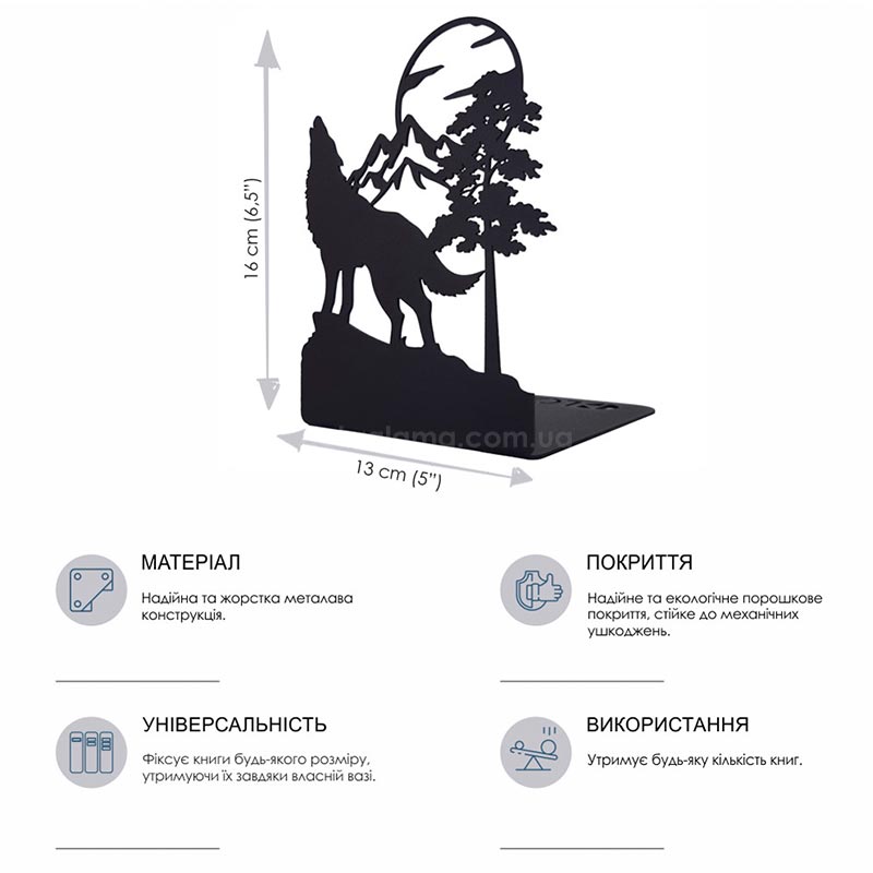 Держатель для книг Glozis Wolf and Moon (черный)