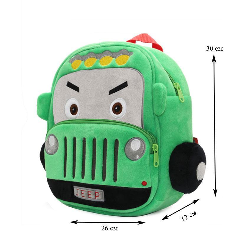 Плюшевый детский рюкзачок в форме зеленой машины - аксессуар, способный покорить сердце любого мальчика.