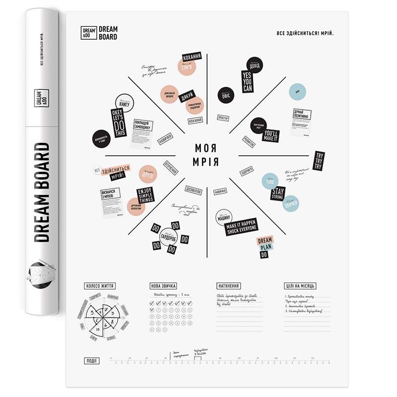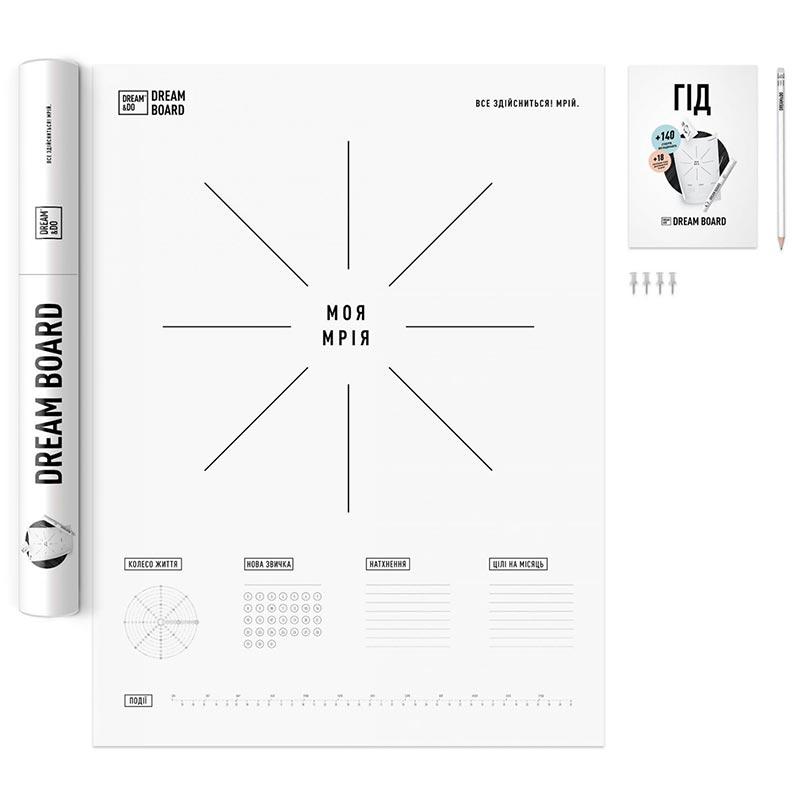 Dream Board — это вдохновляющее украшение интерьера и мотивирующий подарок для друга. Борд влюбит в мечты, упорядочит цели и подскажет, какая же она твоя счастливая жизнь! Dream Board — это ВРЕМЯ на настоящие желания и честный диалог с собой на самую вдохновляющую тему во Вселенной! Готов мечтать и воплощать? Лучшее время начать — это сейчас, не оправдываясь и не откладывая на потом! Доставай мечты и визуализируй, раскладывай на цели и достигай их каждый день.