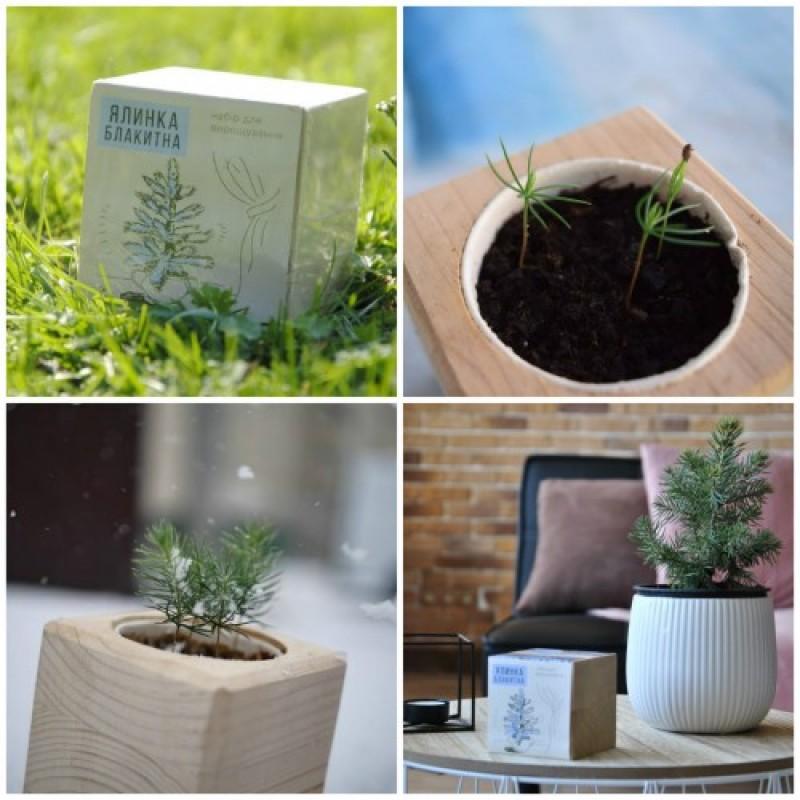 Голубая ель – это редкое растение, находящееся под особой охраной. Однако вырастить ее способен каждый благодаря Экокубу Голубая ель. Такой Экокуб состоит из экологически чистого кубического «горшка», сделанного из натуральной древесины, семян дерева и специального питательного грунта, который подходит для конкретного сорта.