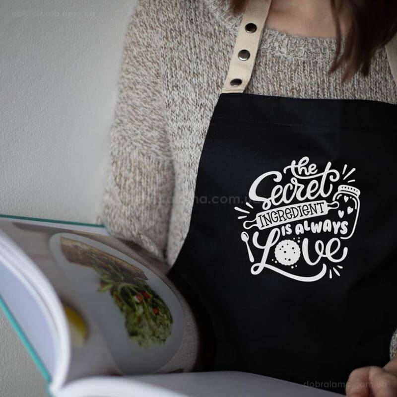 Прикольный фартук для кухни "The secret ingridient is always love"