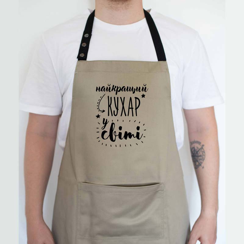 Пельмешки, оливье, тортики, борщи, пловик, котлетки и невероятно вкусный кролик в сметане с розмарином... Если Вас такими блюдами постоянно балуют, тогда стоит порадовать этого супер-повара стильным подарком. Фартук "Найкращий кухар у світі" будет радовать и вдохновлять на приготовление новых блюд.