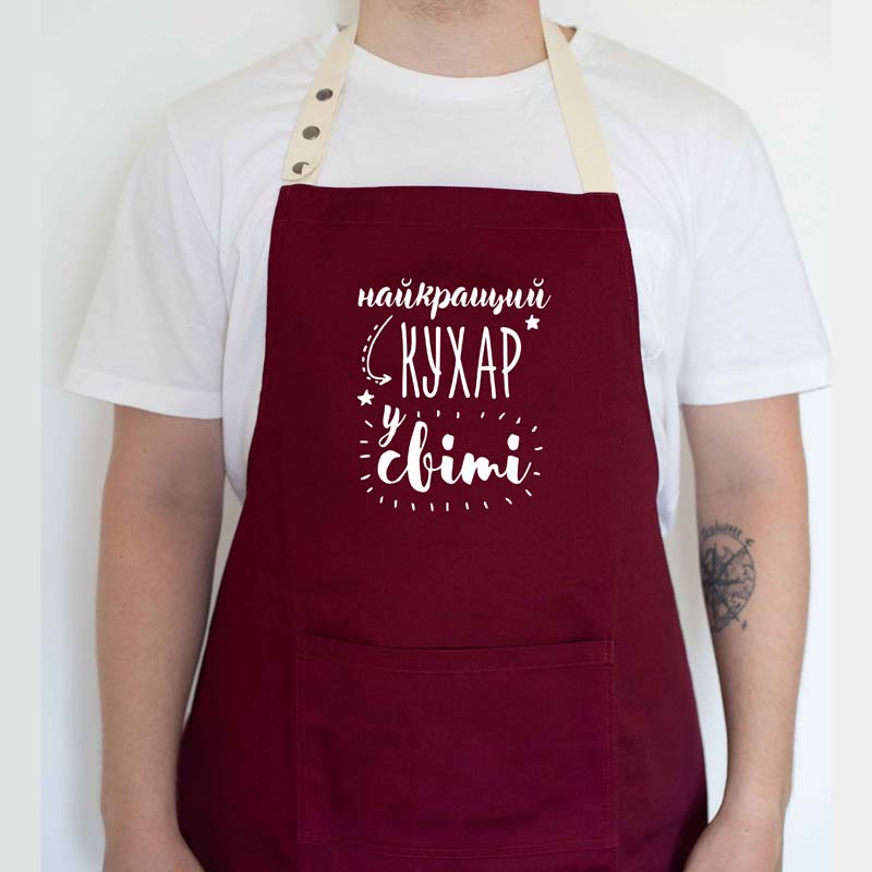 Пельмешки, оливье, тортики, борщи, пловик, котлетки и невероятно вкусный кролик в сметане с розмарином... Если Вас такими блюдами постоянно балуют, тогда стоит порадовать этого супер-повара стильным подарком. Фартук "Найкращий кухар у світі" будет радовать и вдохновлять на приготовление новых блюд.