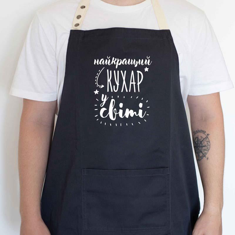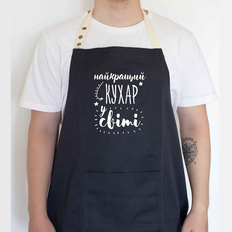 Пельмешки, оливье, тортики, борщи, пловик, котлетки и невероятно вкусный кролик в сметане с розмарином... Если Вас такими блюдами постоянно балуют, тогда стоит порадовать этого супер-повара стильным подарком. Фартук "Найкращий кухар у світі" будет радовать и вдохновлять на приготовление новых блюд.