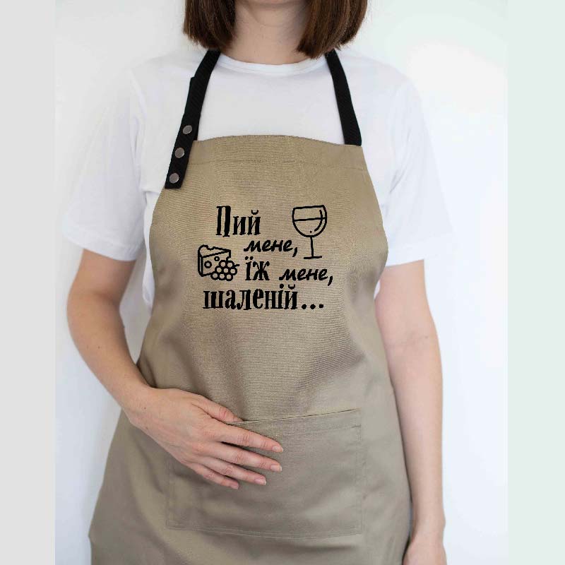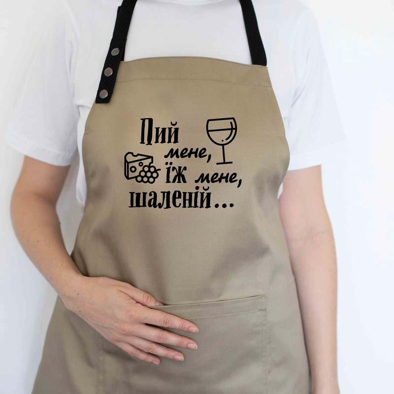 Фартук "Пий мене, їж мене, шаленій" (бежевый)