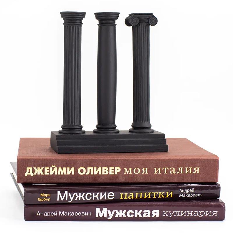 Гипсовые держатели для книг «Три античные колонны» (черные)