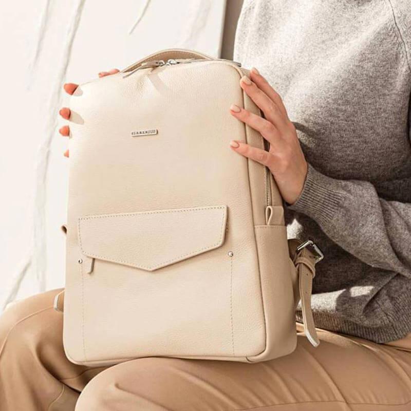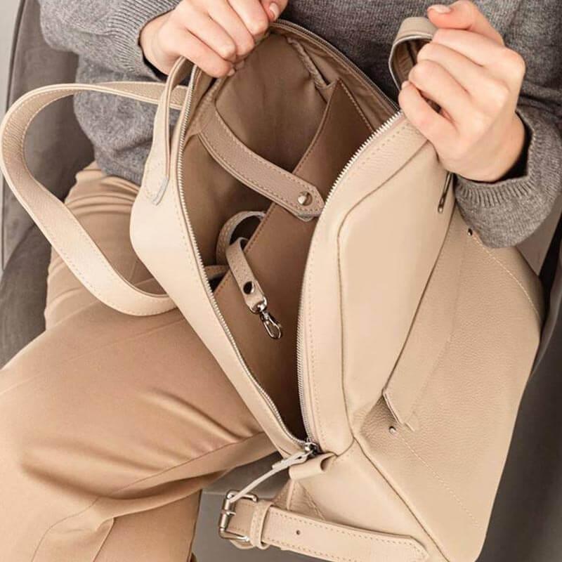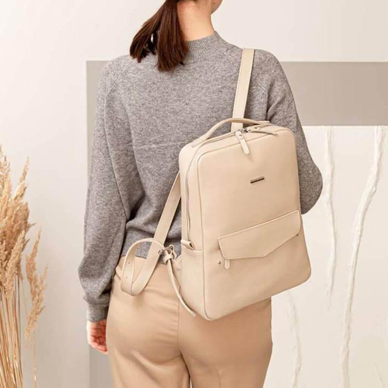 Городской кожаный женский рюкзак Cooper (бежевый)