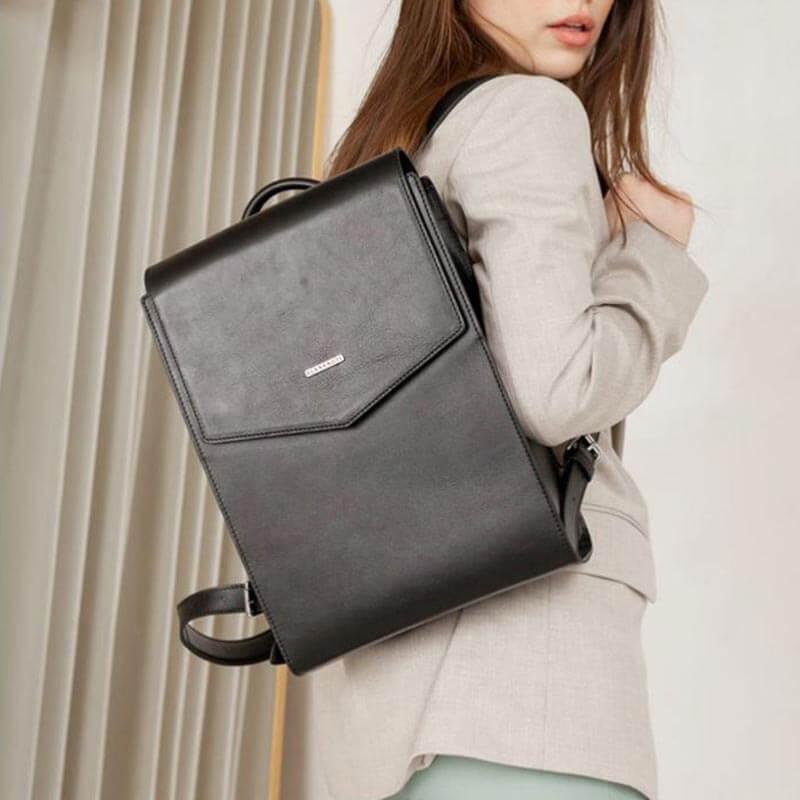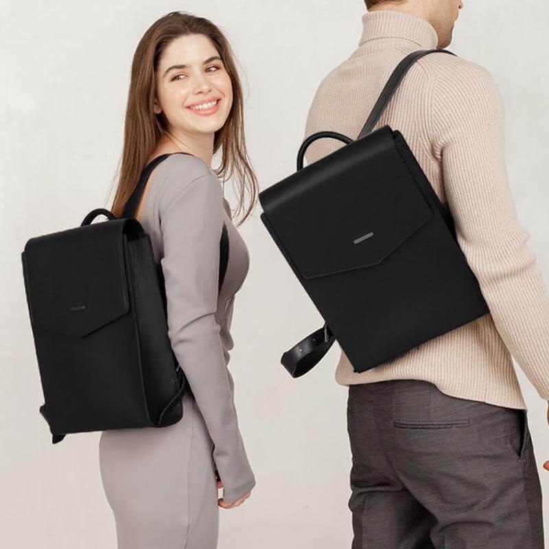 Городской кожаный женский рюкзак (угольно-черный)
