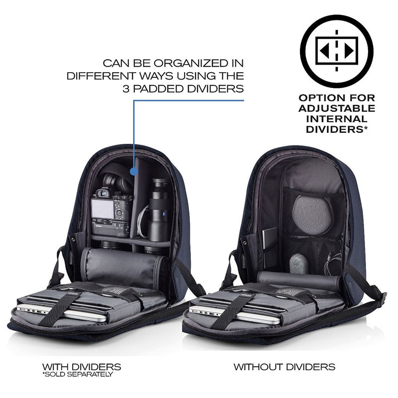 XD Design Bobby Hero XL - обновленная модель всемирно известного рюкзака которая сохранила все свои преимущества, а именно непрорезаемые материалы, скрытые молнии и тайные карманы, интегрированный порт USB для зарядки, сбалансированный вес, водоотталкивающая ткань, светоотражающие полосы безопасности и ремень для крепления на чемодан.