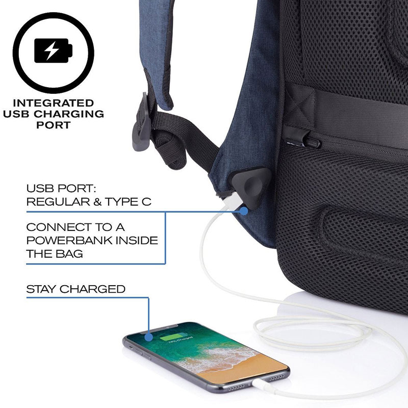 XD Design Bobby Pro - обновленная модель всемирно известного рюкзака которая сохранила все свои преимущества, а именно непрорезаемые материалы, скрытые молнии и тайные карманы, интегрированный порт USB для зарядки, сбалансированный вес, водоотталкивающая ткань, светоотражающие полосы безопасности и ремень для крепления на чемодан.
