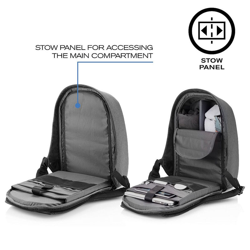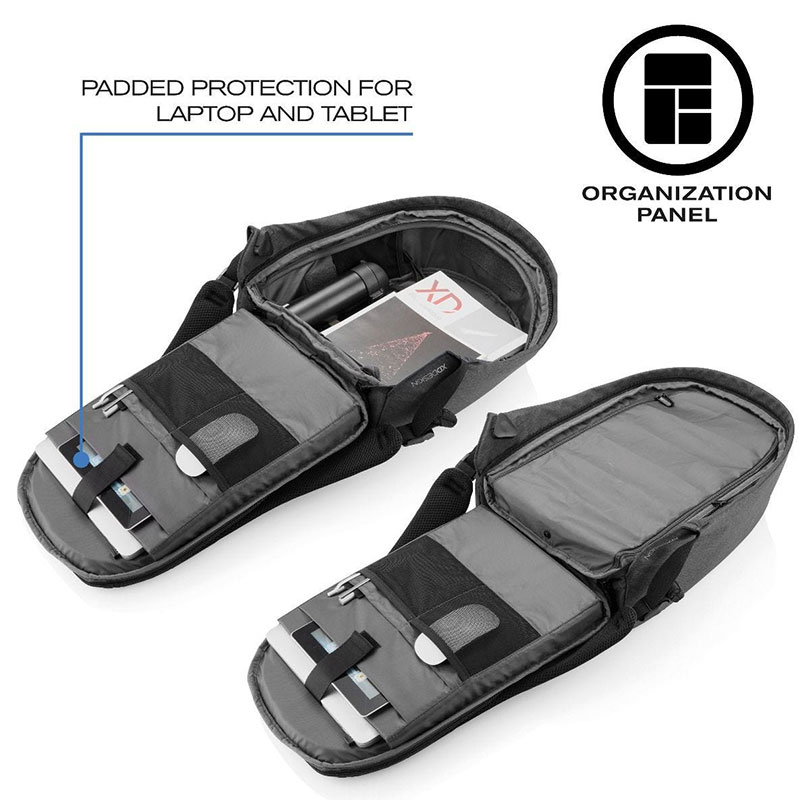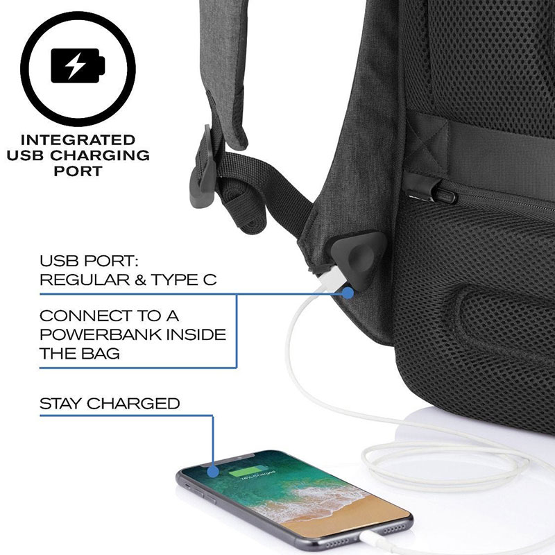 XD Design Bobby Tech - обновленная модель всемирно известного рюкзака которая сохранила все свои преимущества, а именно непрорезаемые материалы, скрытые молнии и тайные карманы, интегрированный порт USB для зарядки, сбалансированный вес, водоотталкивающая ткань, светоотражающие полосы безопасности и ремень для крепления на чемодан.