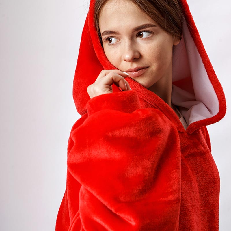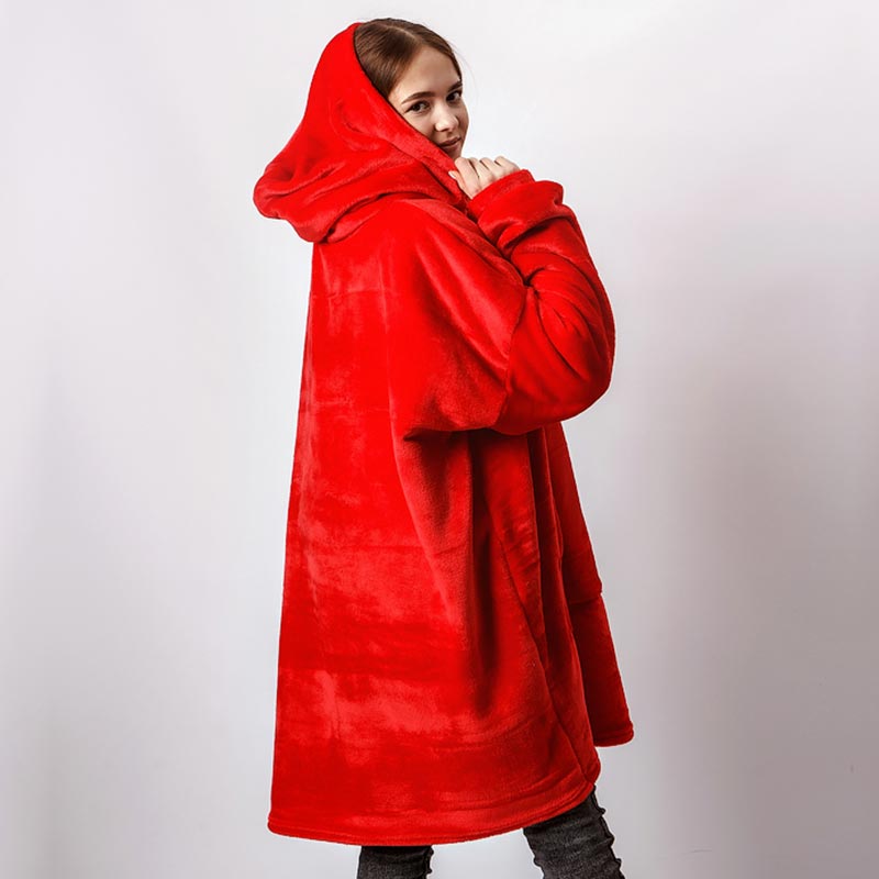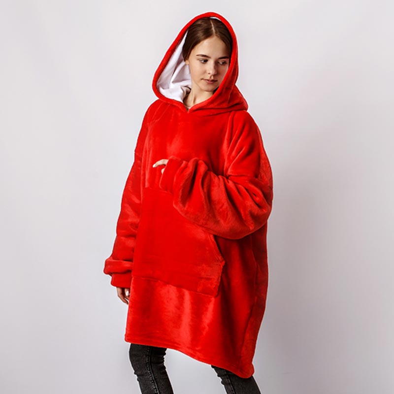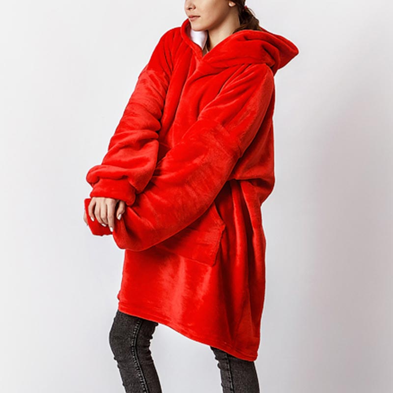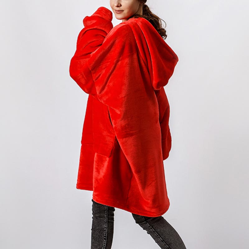 Худи-плед с рукавами и капюшоном из микрофибры (красный)