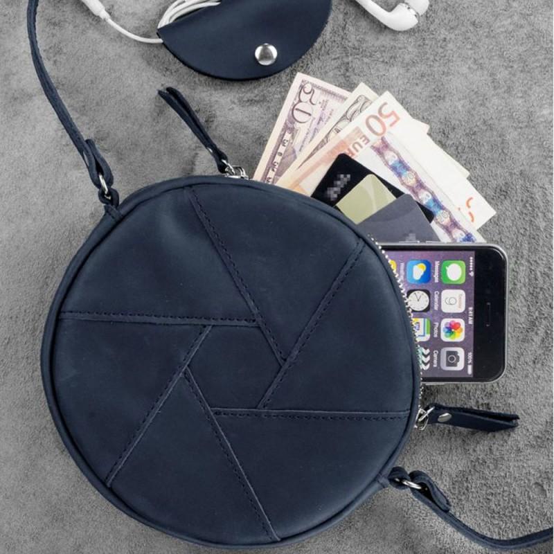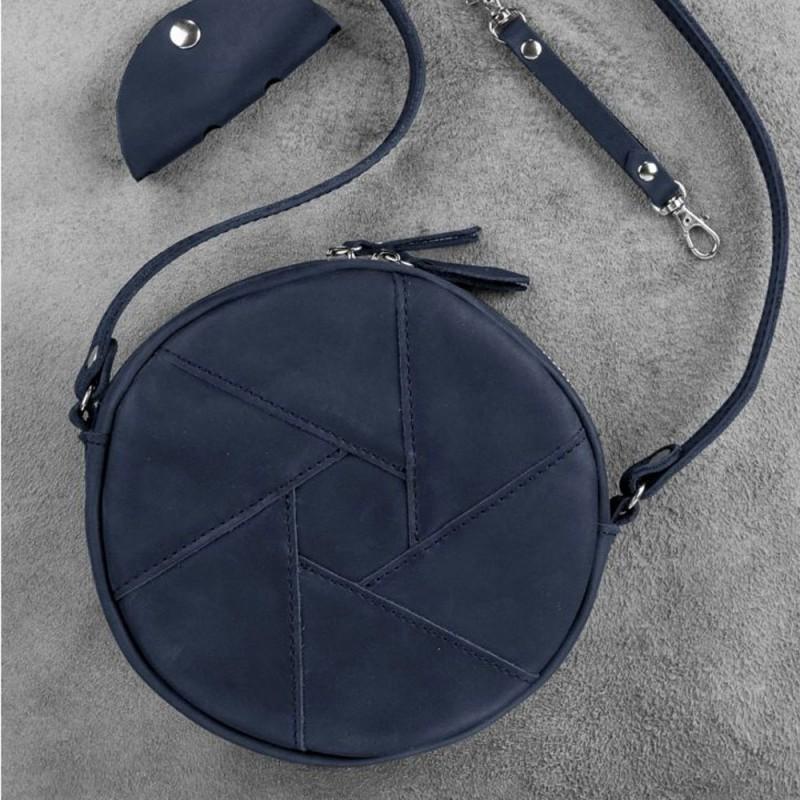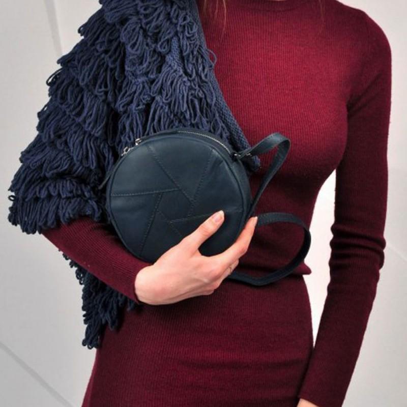 Женская кожаная сумка "Бон-бон" (темно-синяя) кожа Crazy Horse