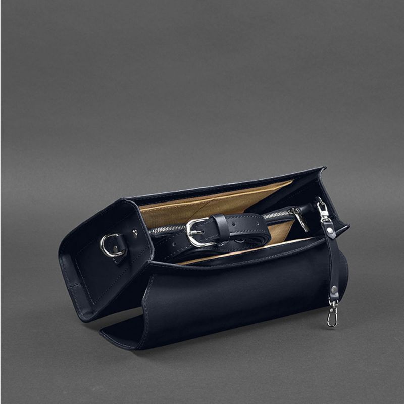 Женская кожаная сумка кросс-боди (темно-синяя)