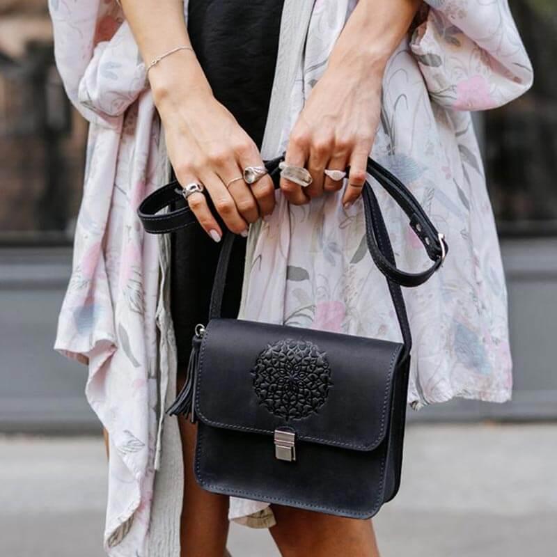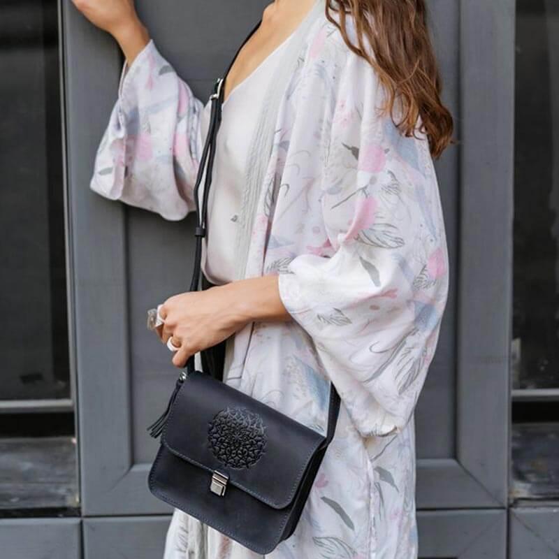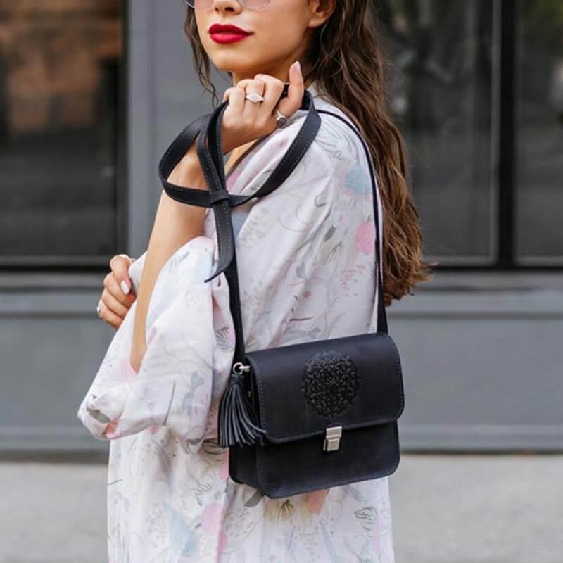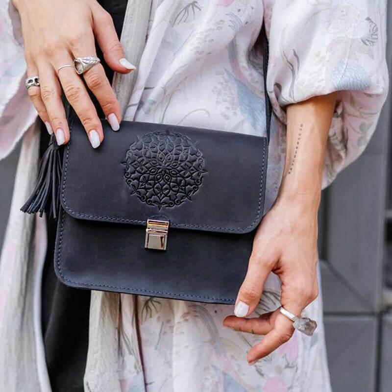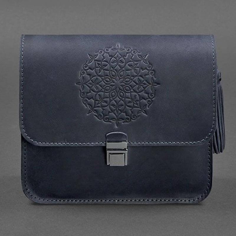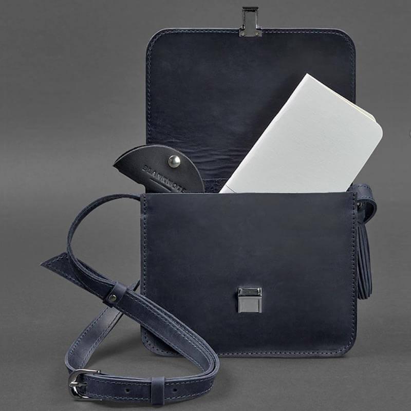 Женская кожаная сумка "Лилу" (темно-синяя)