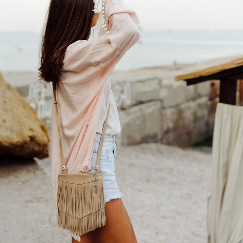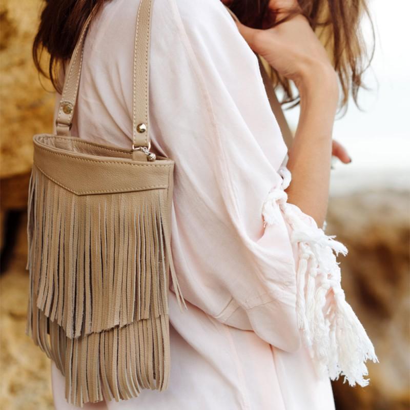 Женская кожаная сумка мини-кроссбоди Fleco (светло-бежевая)