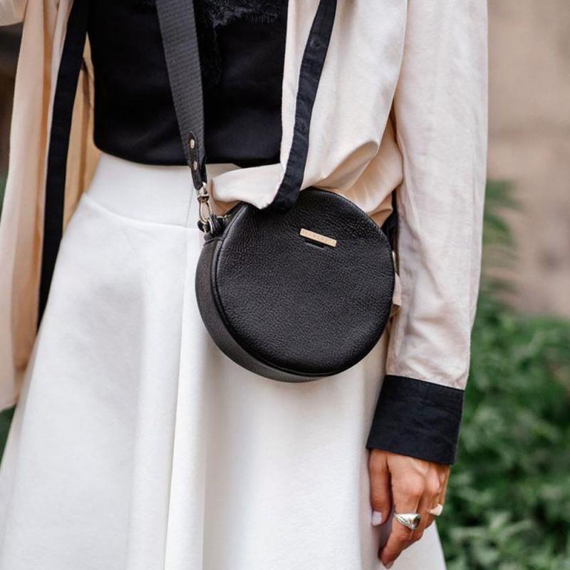 Кросс-боди пошита из кожи флотар, что делает её практичной и долговечной. Благодаря круглой форме и одному общему отделению, она удобна и супервместительна.