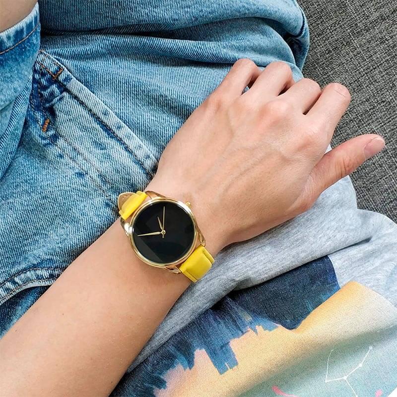 Женские наручные часы ZIZ "Черный минимализм" (золото-желтый)