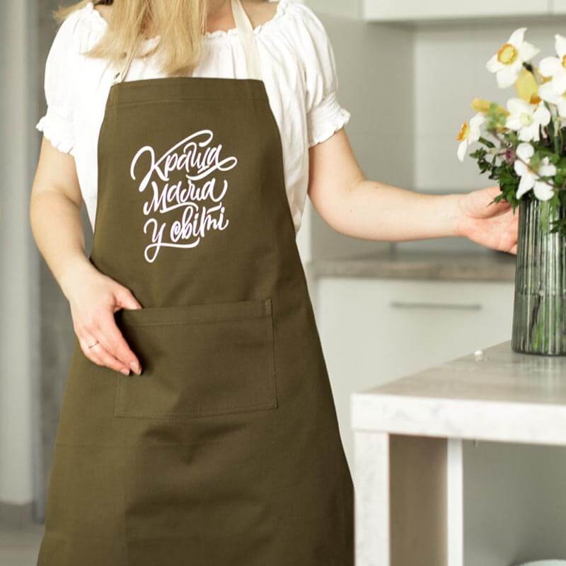 Приобретая такой передник, будьте уверены, что Вам будет комфортно и удобно в нем готовить.
