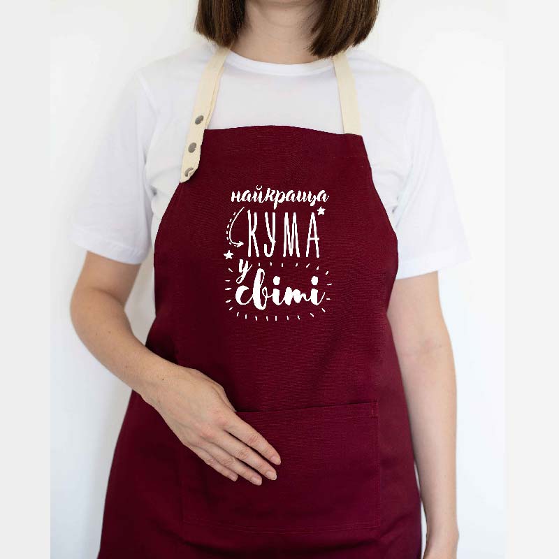 Женский фартук "Найкраща кума у світі" (бордовый)