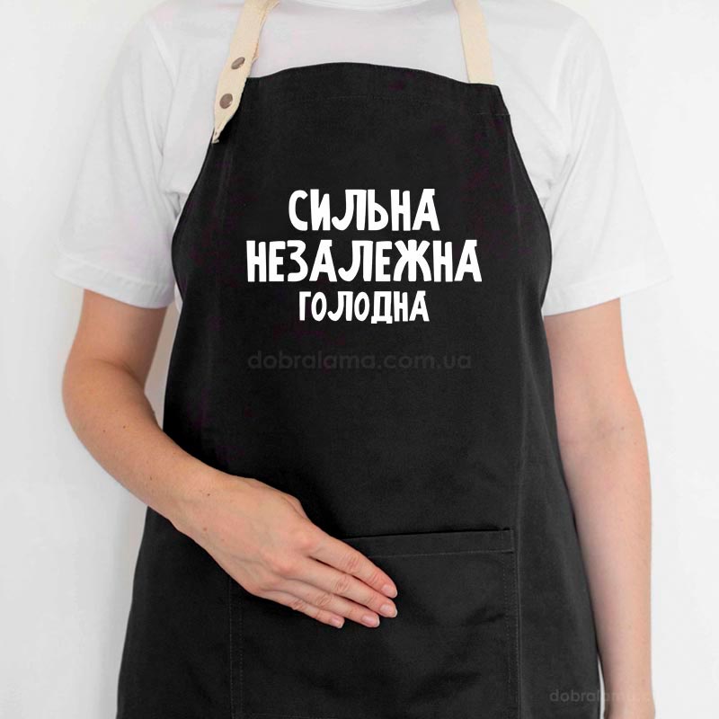 Женский фартук «Сильна, незалежна, голодна» (черный)