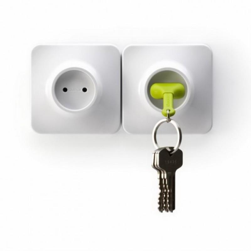 Ключница настенная и брелок для ключей Unplug Qualy (белый-зеленый)