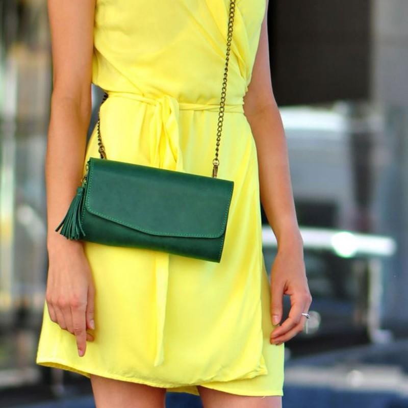 Такой выразительный аксессуар подойдет абсолютно каждой девушке, независимо от возраста. Он прекрасно будет сочетаться с одеждой и обувью других цветов радуги.