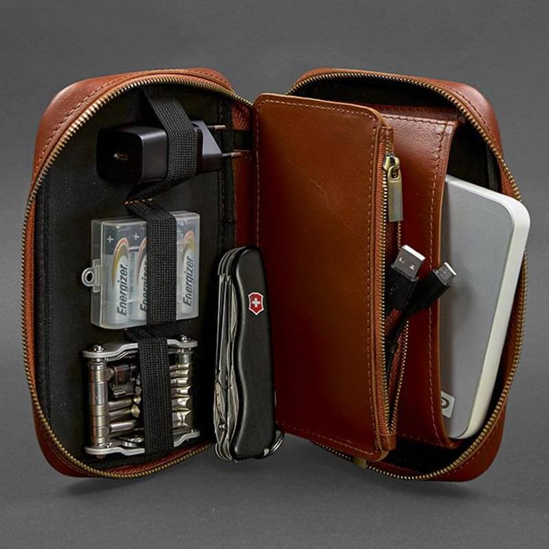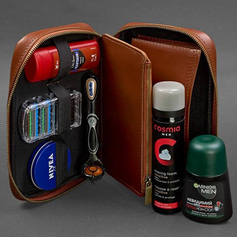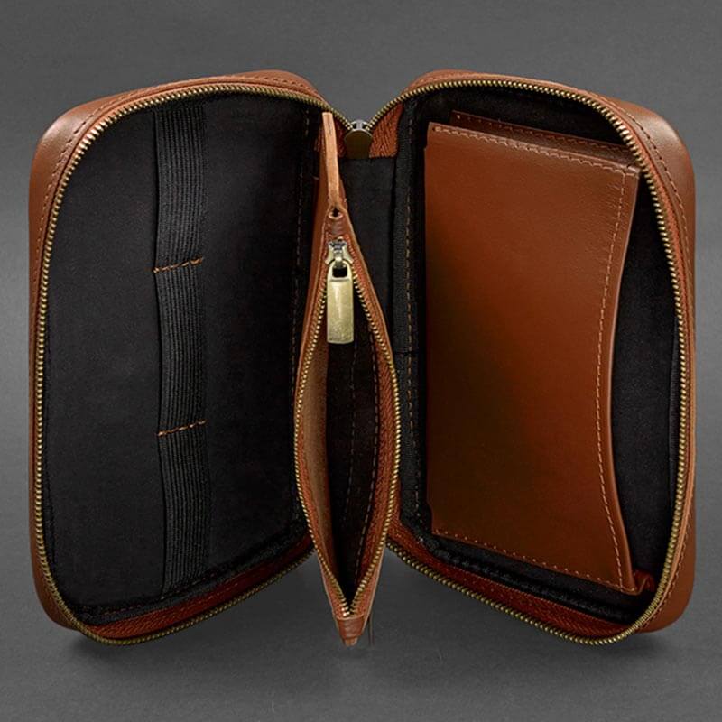 Кожаная косметичка-несессер 7.0 (светло-коричневая) кожа Krast
