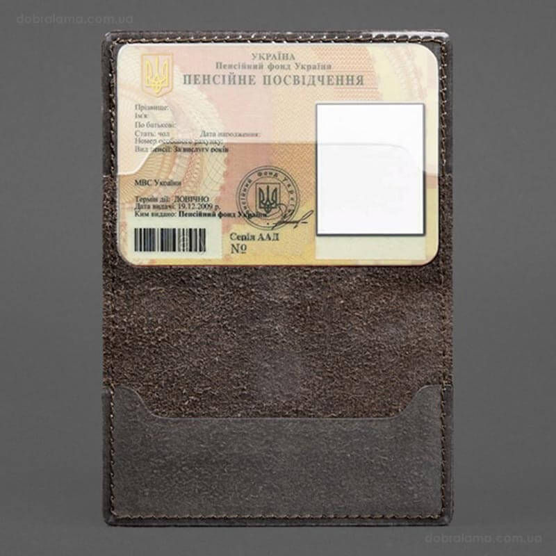 Кожаная обложка для пенсионного удостоверения (темно-коричневая)