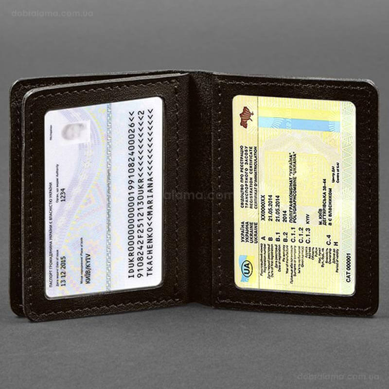 На внутренней стороне обложки размещены два слота для пластиковых карточек, которые вам нужно иметь под рукой. Эти слоты хорошо держат карточки, предотвращая их выпадение, тем самым обеспечивая их безопасность. Также обложка имеет 2 двухсторонних отделения с прозрачными окошками. Таким образом ID-карту или водительское удостоверение можно демонстрировать, не доставая с обложки.
