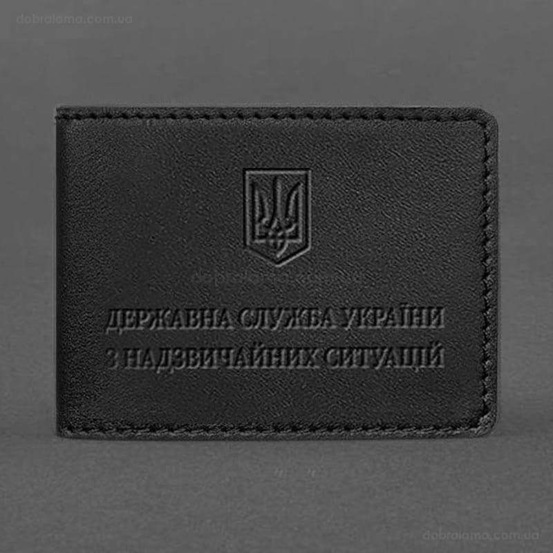 Кожаная обложка для удостоверения ГСЧС (черная) кожа Krast