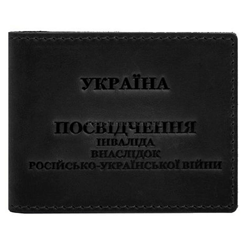 Кожаная обложка для удостоверения инвалида российско-украинской войны (черная) кожа Crazy Horse