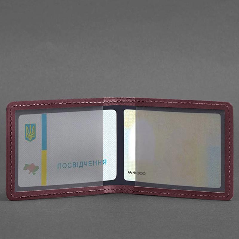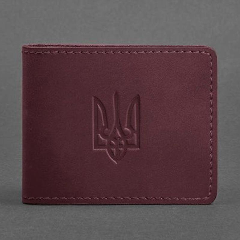 Кожаная обложка для удостоверения с гербом Украины (бордовая) кожа Crazy Horse