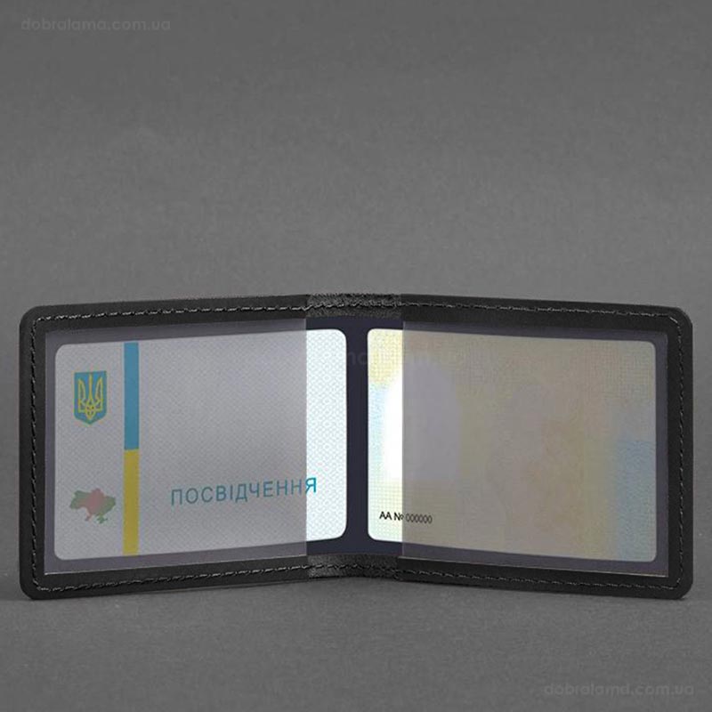 Кожаная обложка для удостоверения с гербом Украины (черная) кожа Crazy Horse