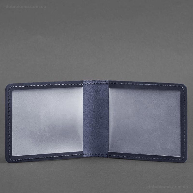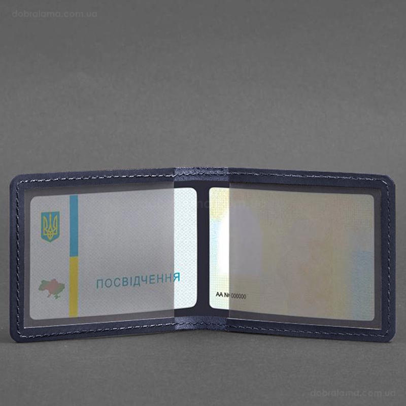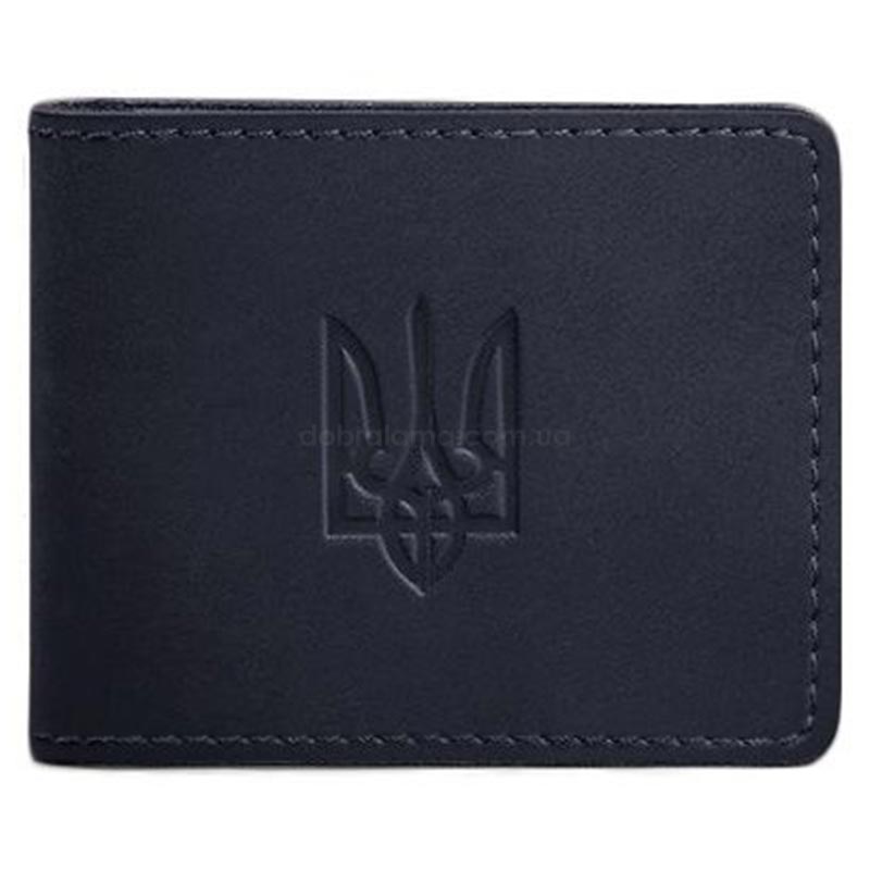 Кожаная обложка для удостоверения с гербом Украины (темно-синяя) кожа Crazy Horse