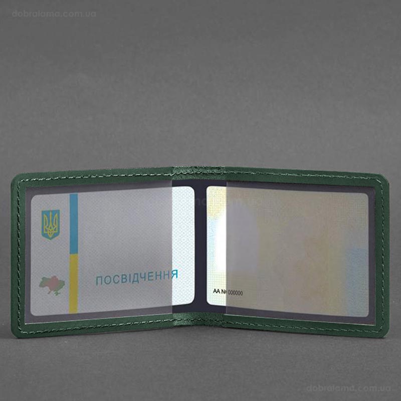 Кожаная обложка для удостоверения с гербом Украины (зеленая) кожа Crazy Horse