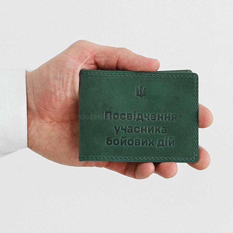 Кожаная обложка для удостоверения УБД 2.2 (зеленая) 8,5х11,5, кожа Crazy Horse