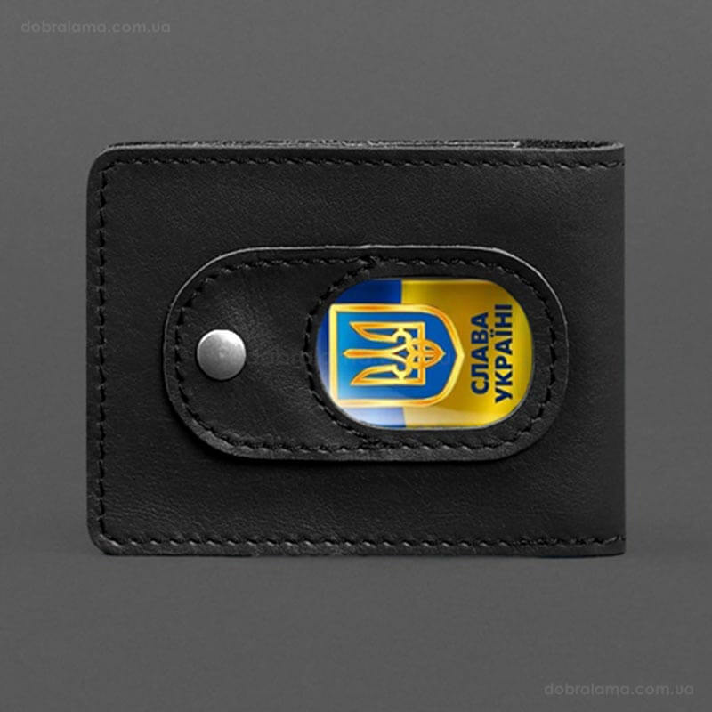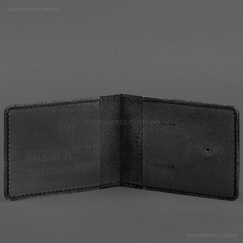 Кожаная обложка для удостоверения УБД с карманом для жетона (черная), 8,5х11,5