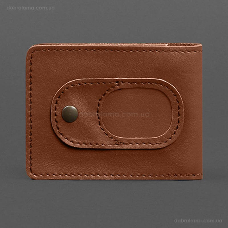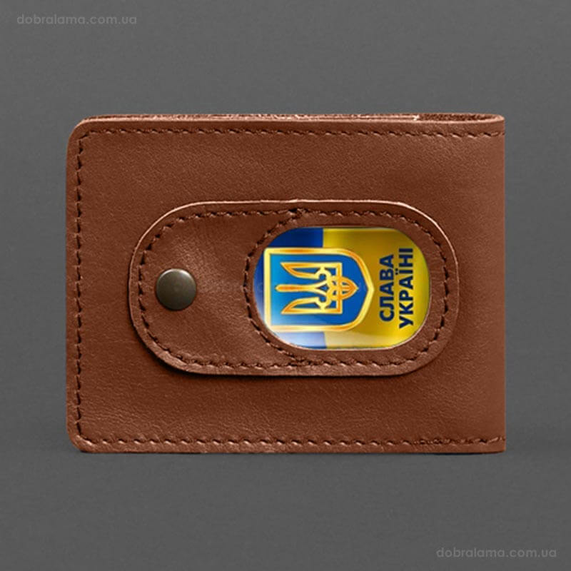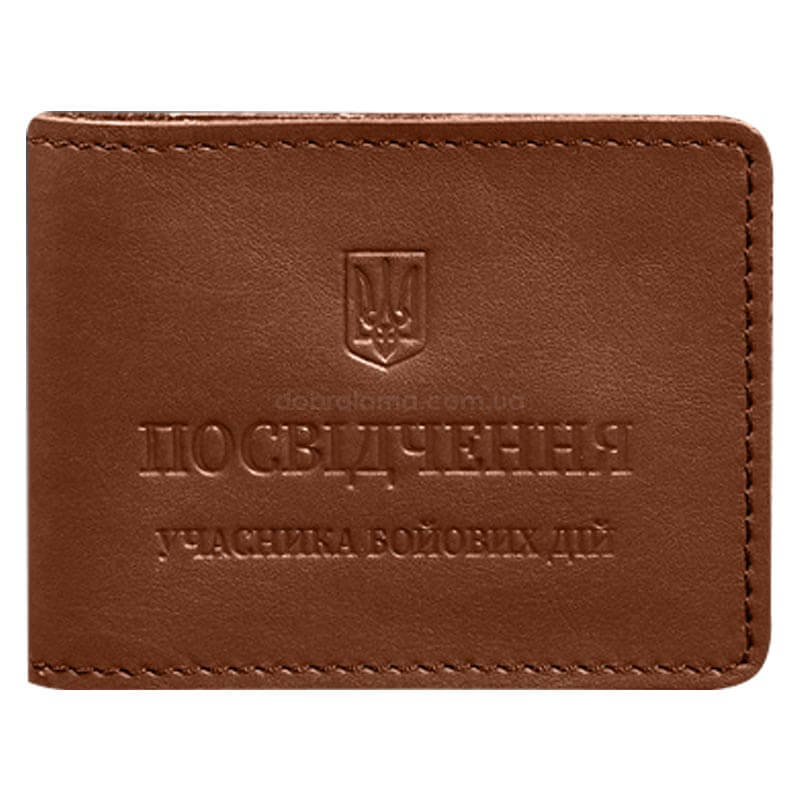 Кожаная обложка для удостоверения УБД с карманом для жетона (светло-коричневая), 8х10,5