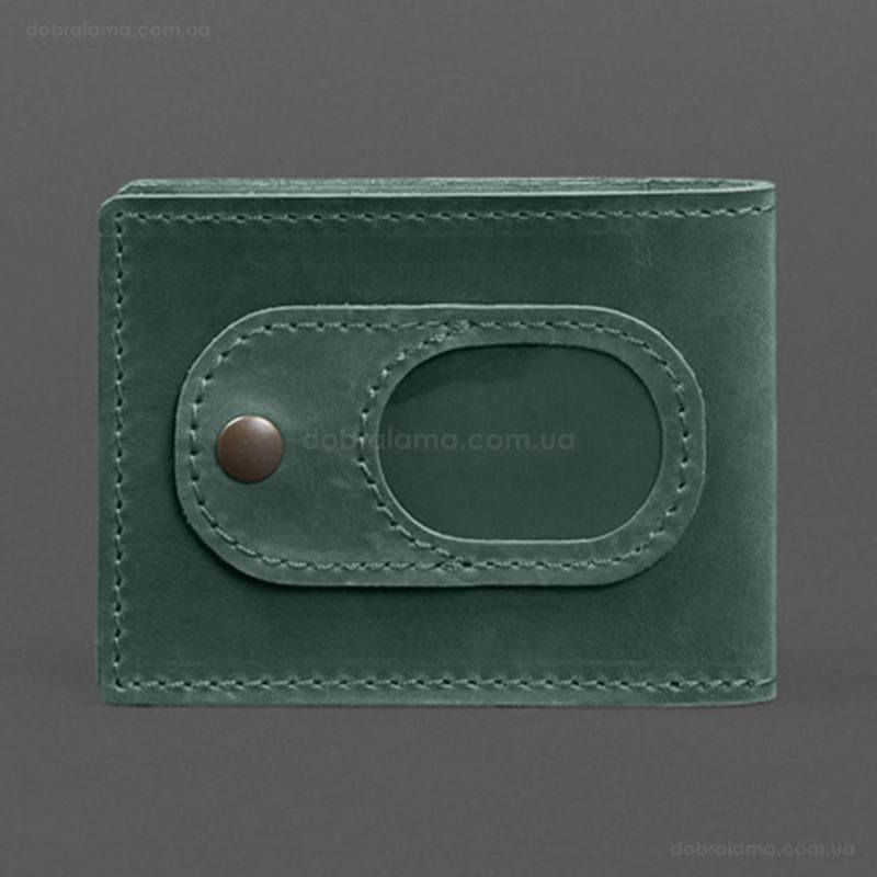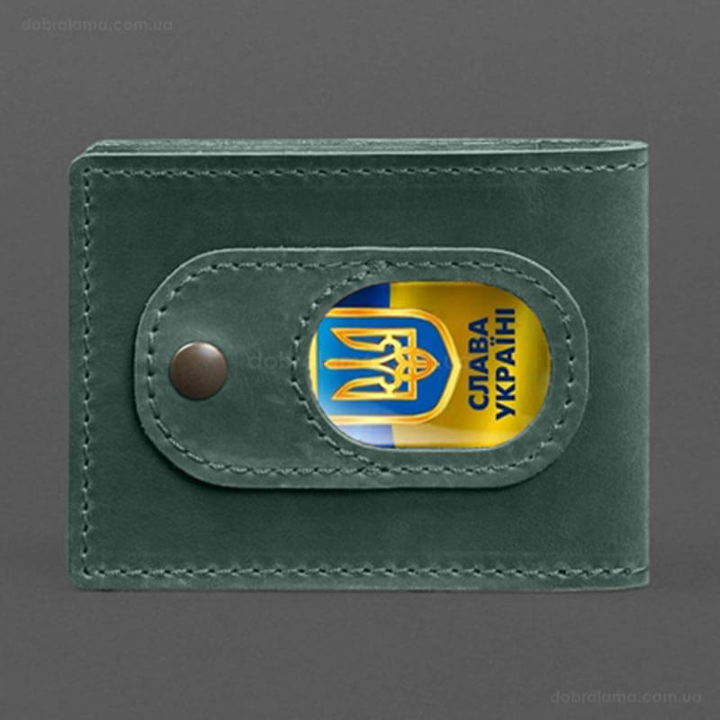 Кожаная обложка для удостоверения УБД с карманом для жетона (зеленая), 8,5х11,5, кожа Crazy Horse