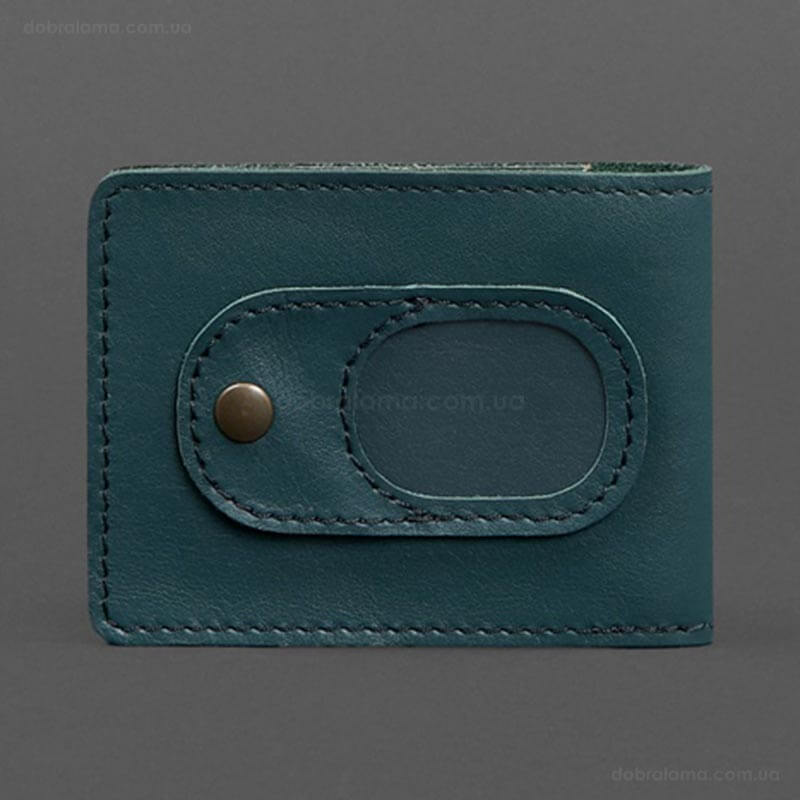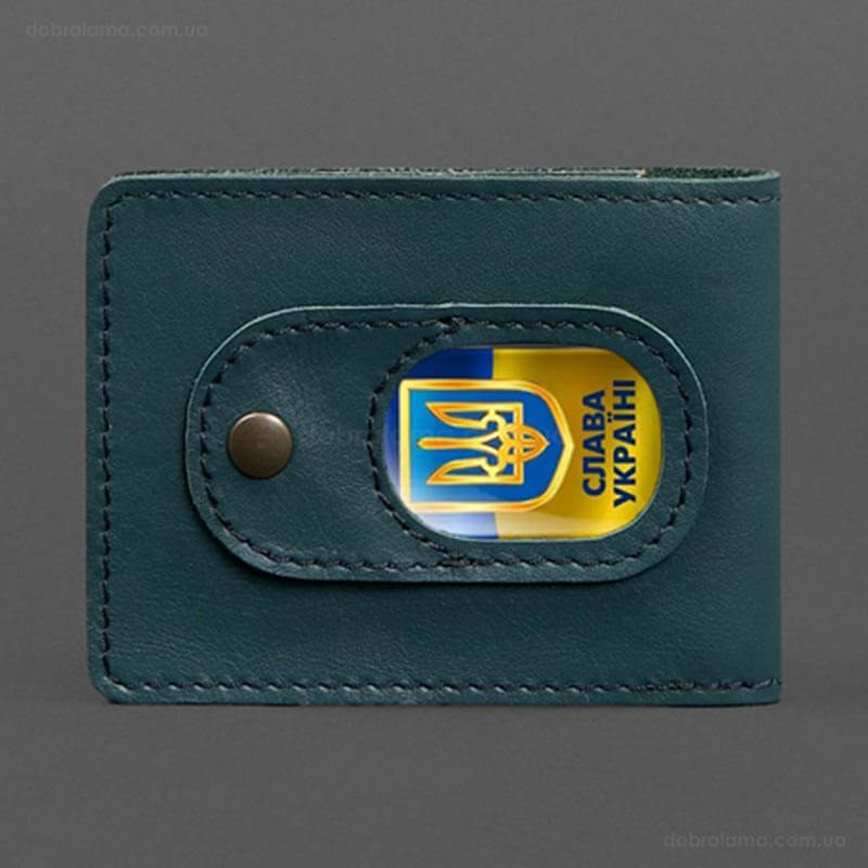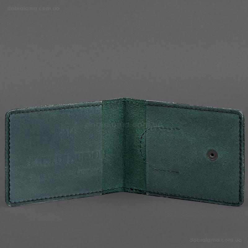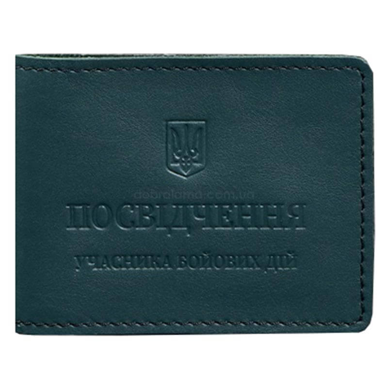 Кожаная обложка для удостоверения УБД с карманом для жетона (зеленая), 8х10,5