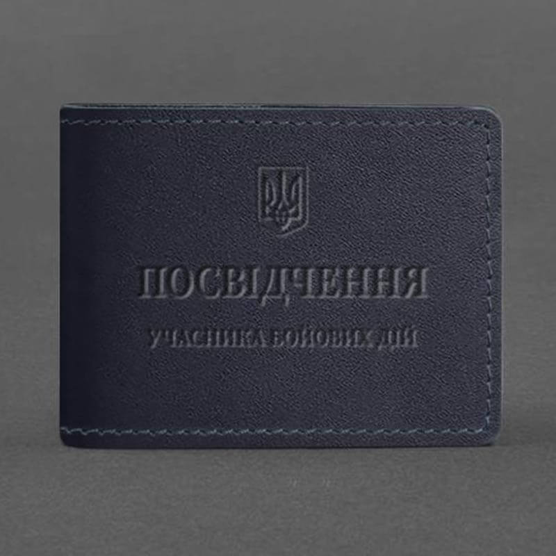 Кожаная обложка для удостоверения УБД (темно-синяя) 8,5x11,5