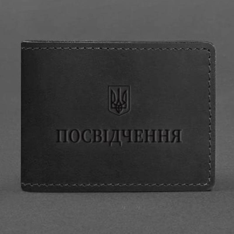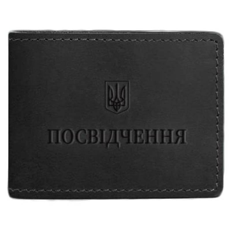 Кожаная обложка для удостоверения с гербом Украины (черная) кожа Krast