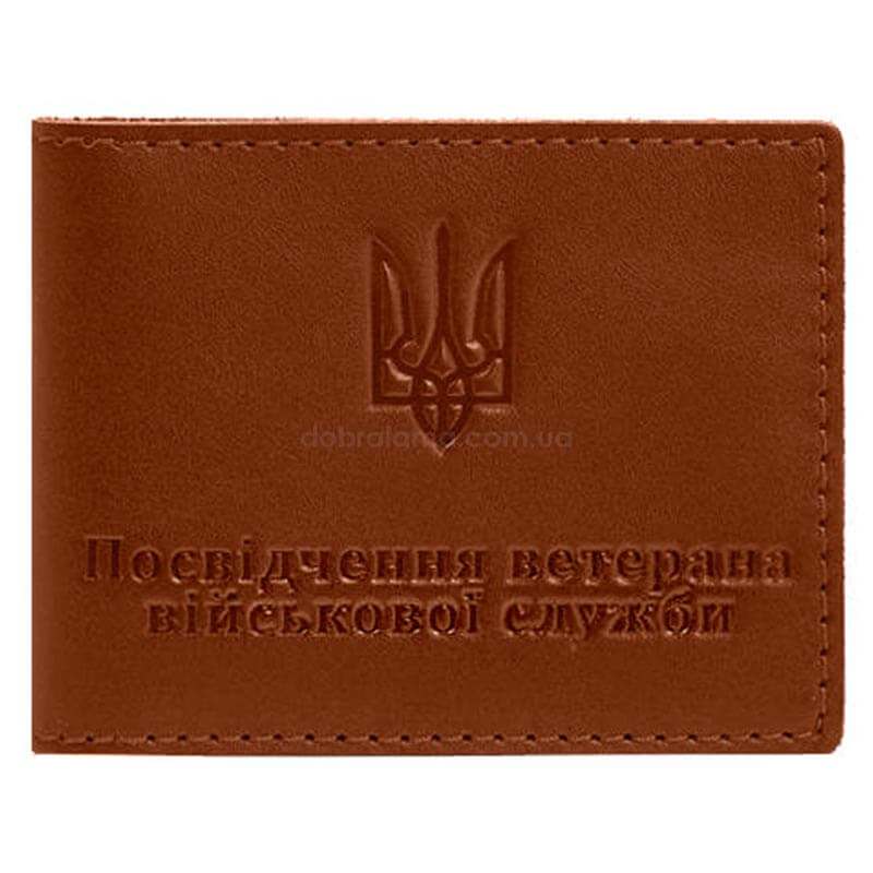 Кожаная обложка для удостоверения ветерана военной службы (светло-коричневая)