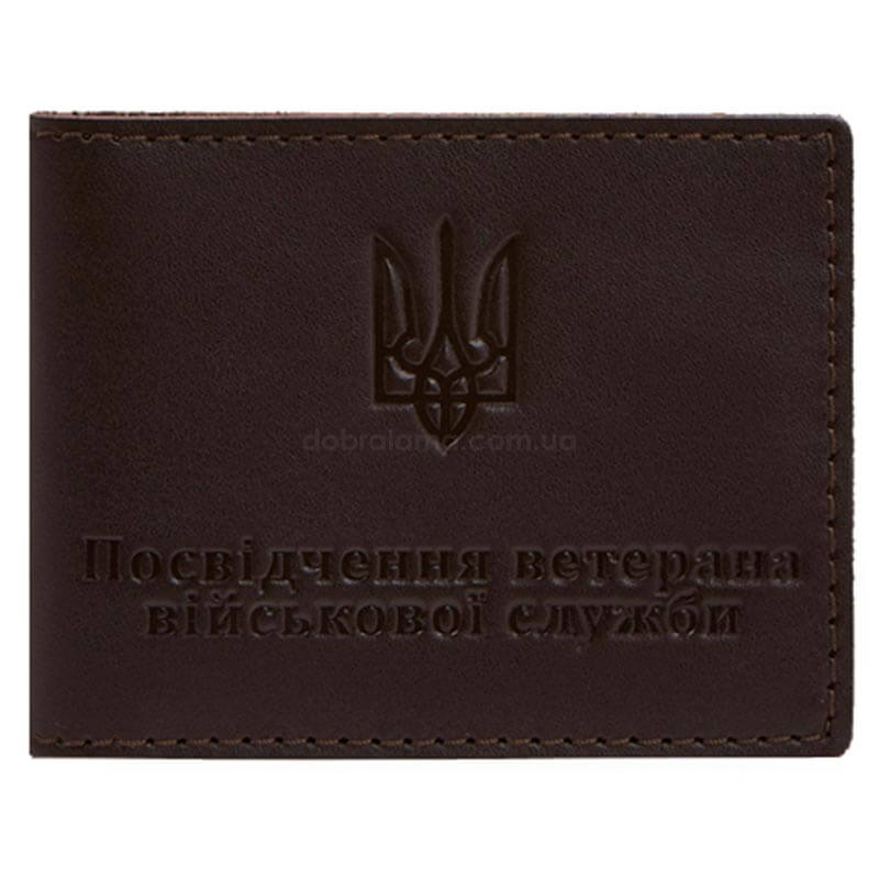 Кожаная обложка для удостоверения ветерана военной службы (темно-коричневая)