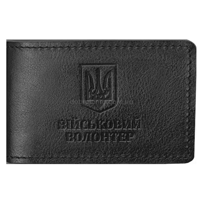 Кожаная обложка для удостоверения военного волонтера (черная)