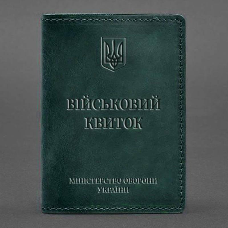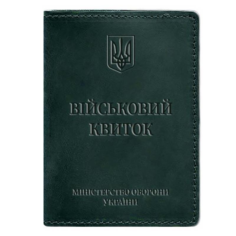 Тиснение на лицевой стороне обложки полностью дублирует оригинальный бланк документа. Вверху расположен герб Украины, посередине находится надпись «Військовий квиток» и в нижней части имеется тиснение "Міністерство оборони України"